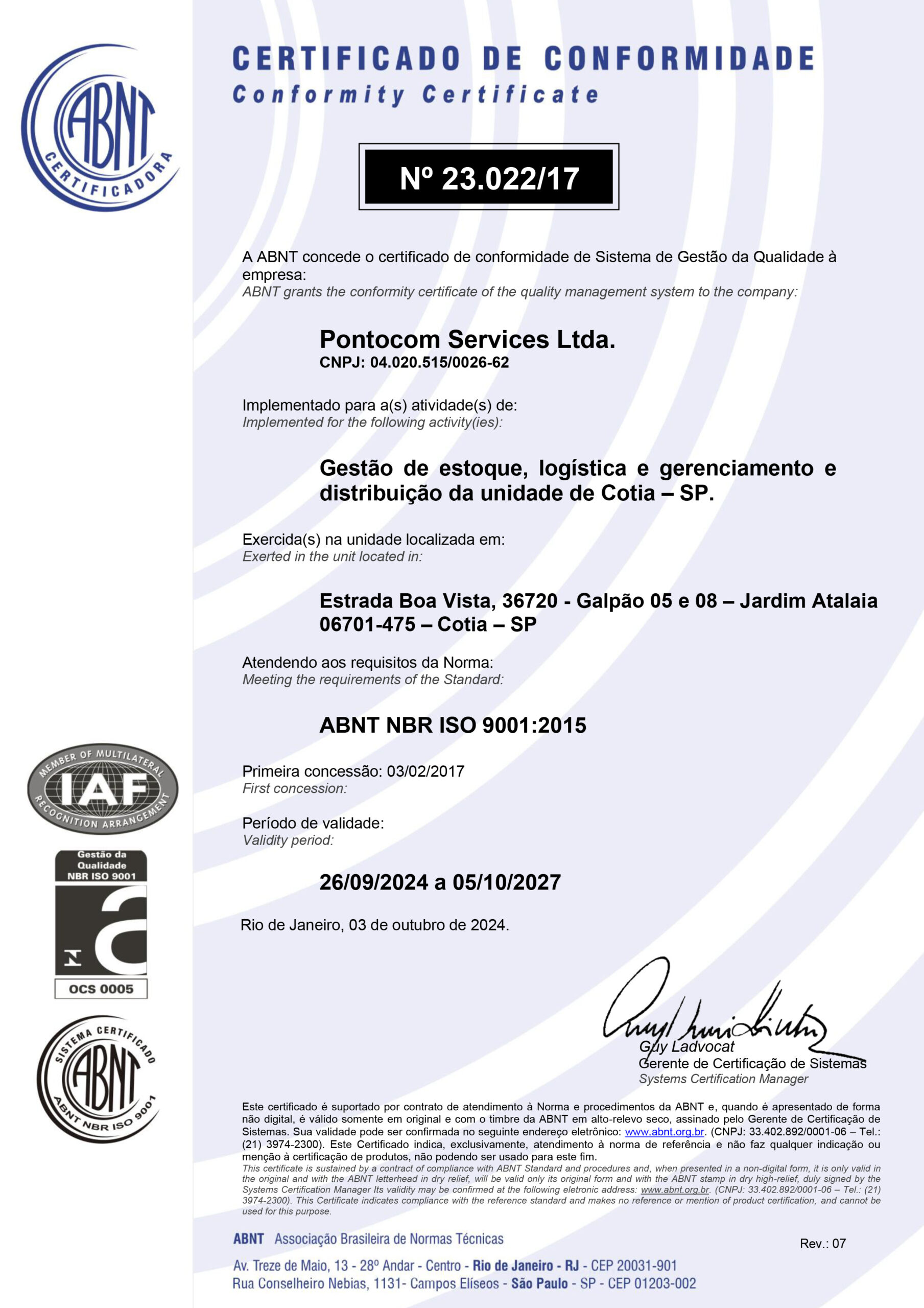 Estrada Boa Vista, 36720 - Galpão 05 e 08 – Cotia 06701-475 – São Paulo - SP
